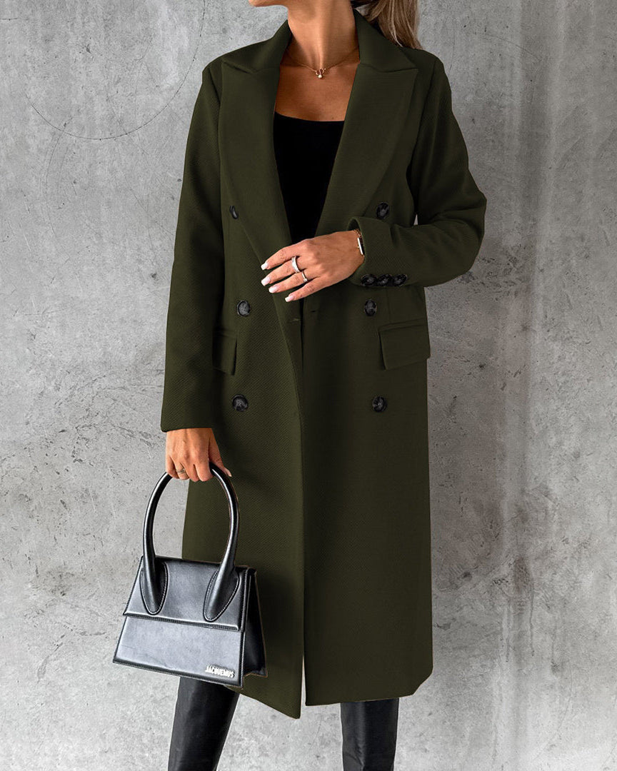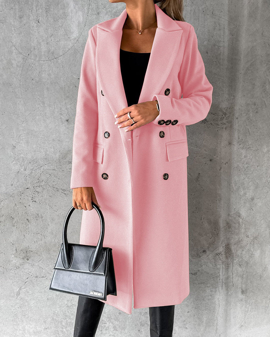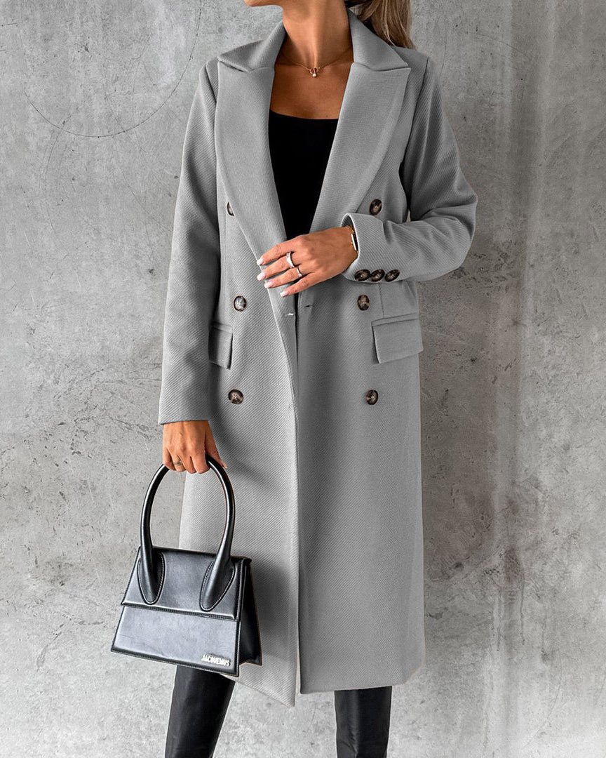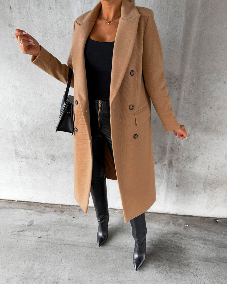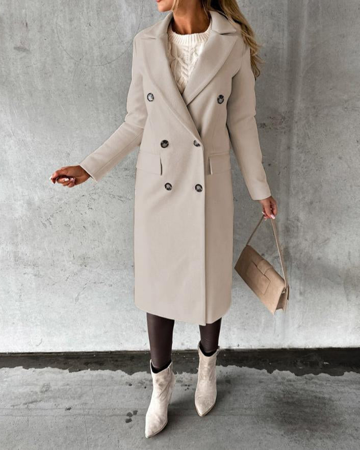 Cappotto Lungo da Donna - Con Design a Doppio Petto e Bavero Dentellato