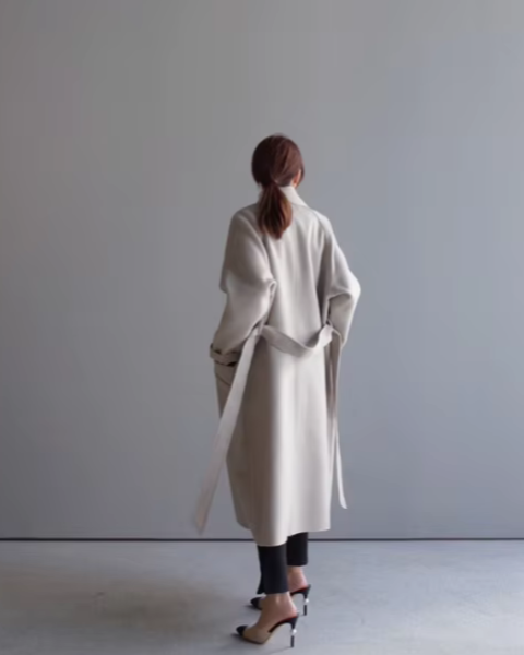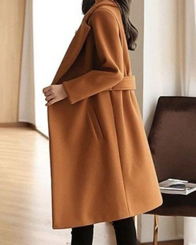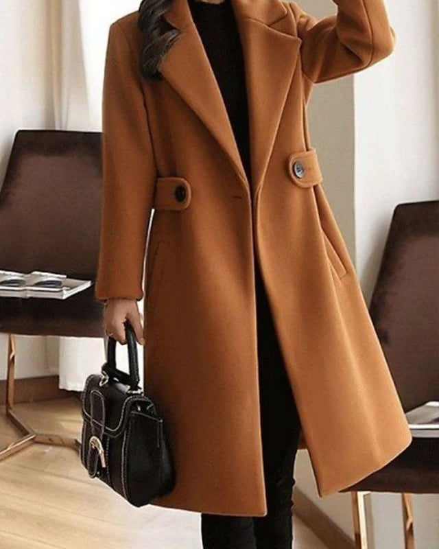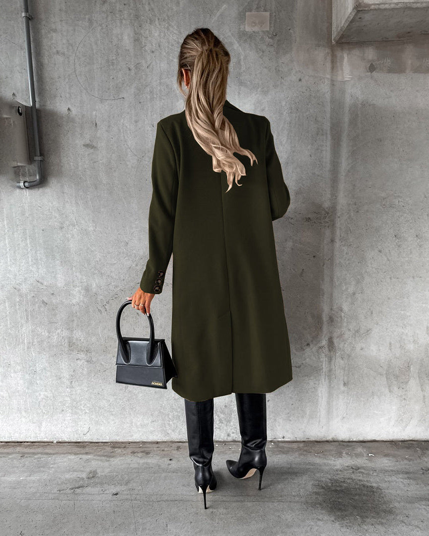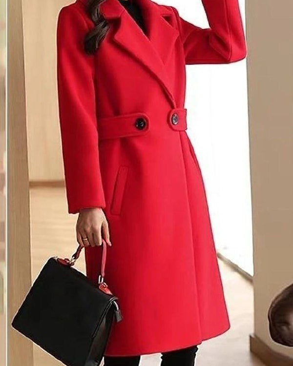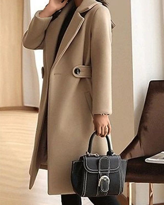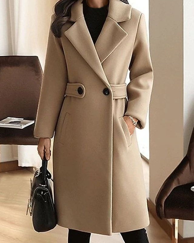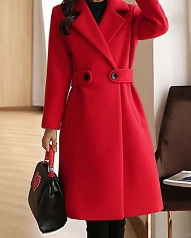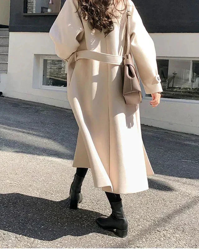 Cappotto Lungo da Donna - Con Design a Doppio Petto e Bavero Dentellato