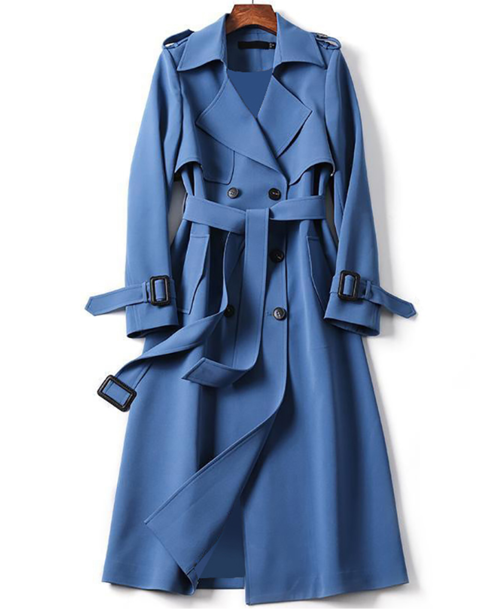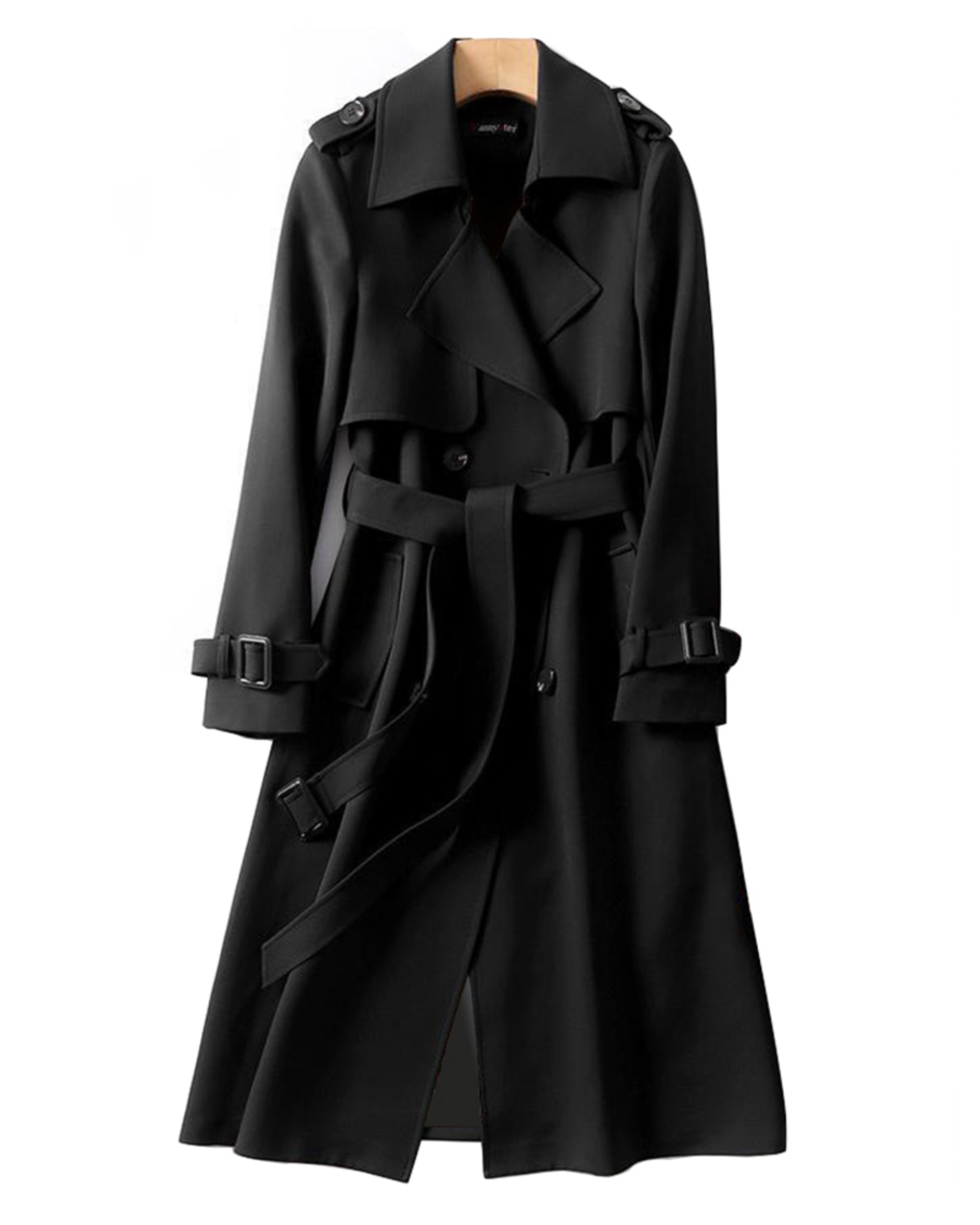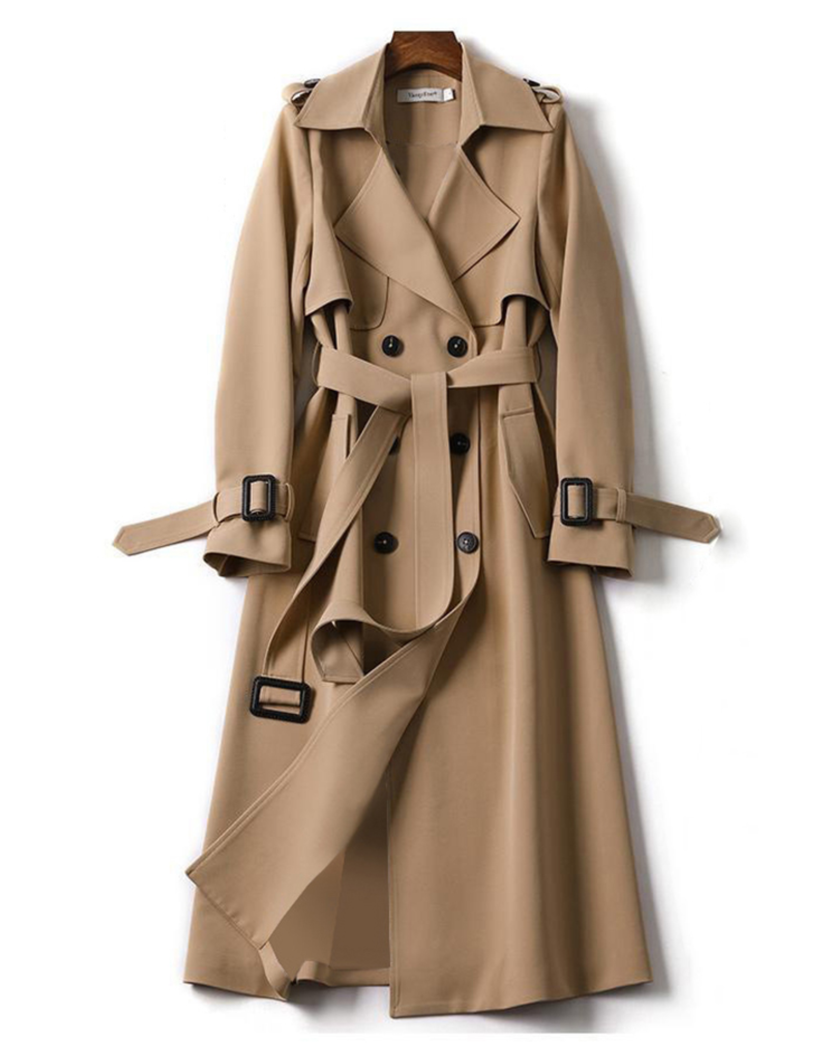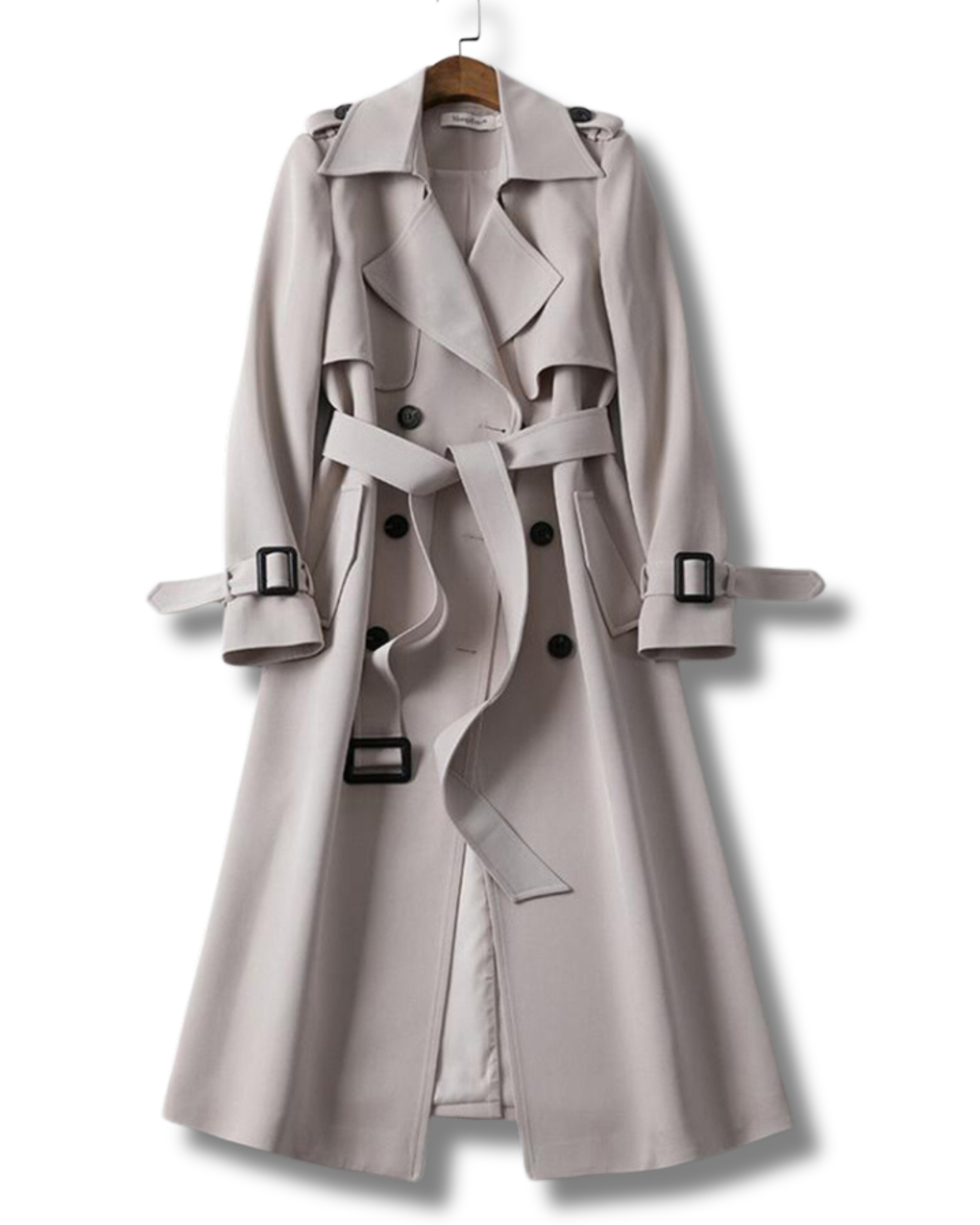 Trench Lungo Doppiopetto da Donna - Con Cintura in Vita e Spalline sulle Spalle