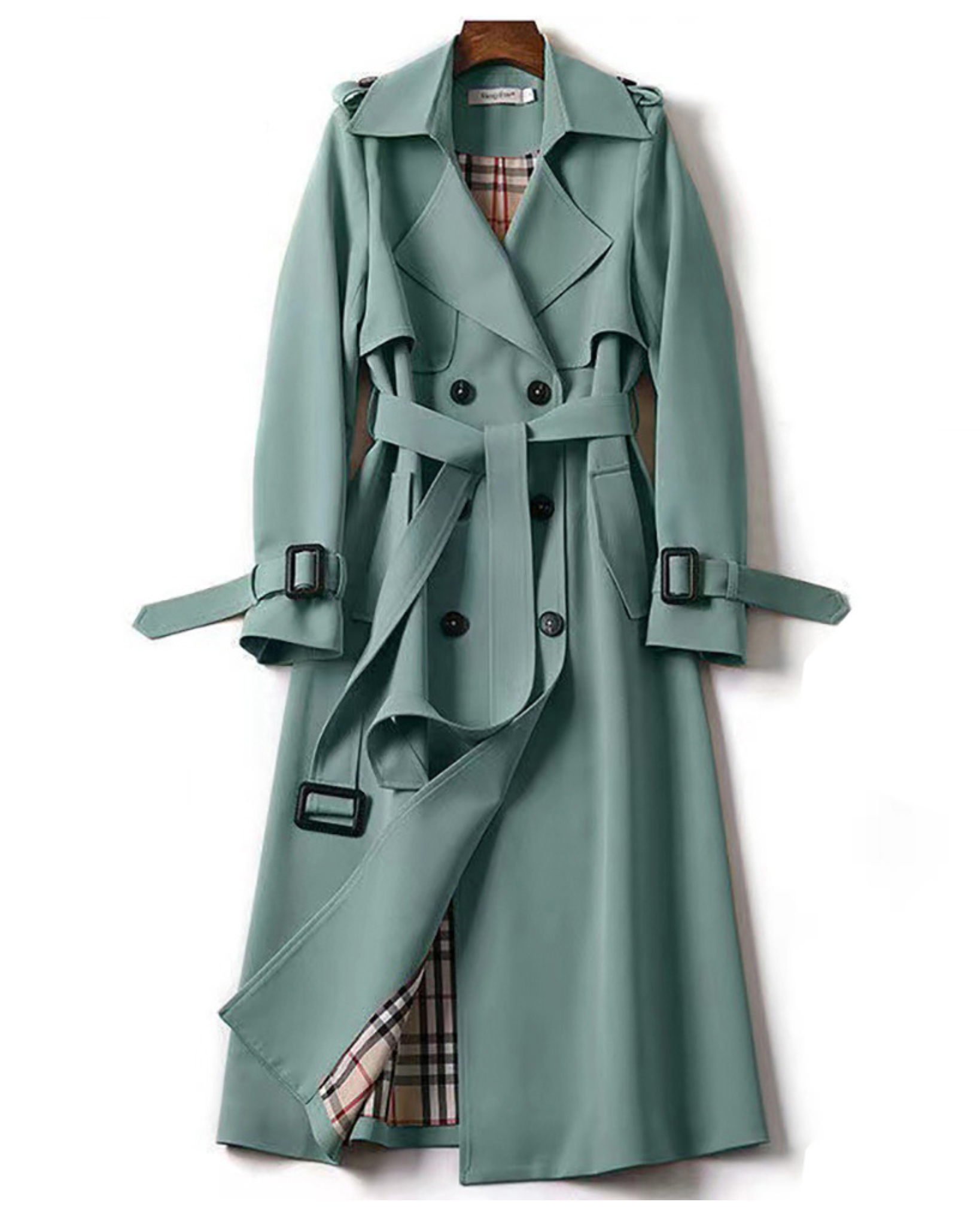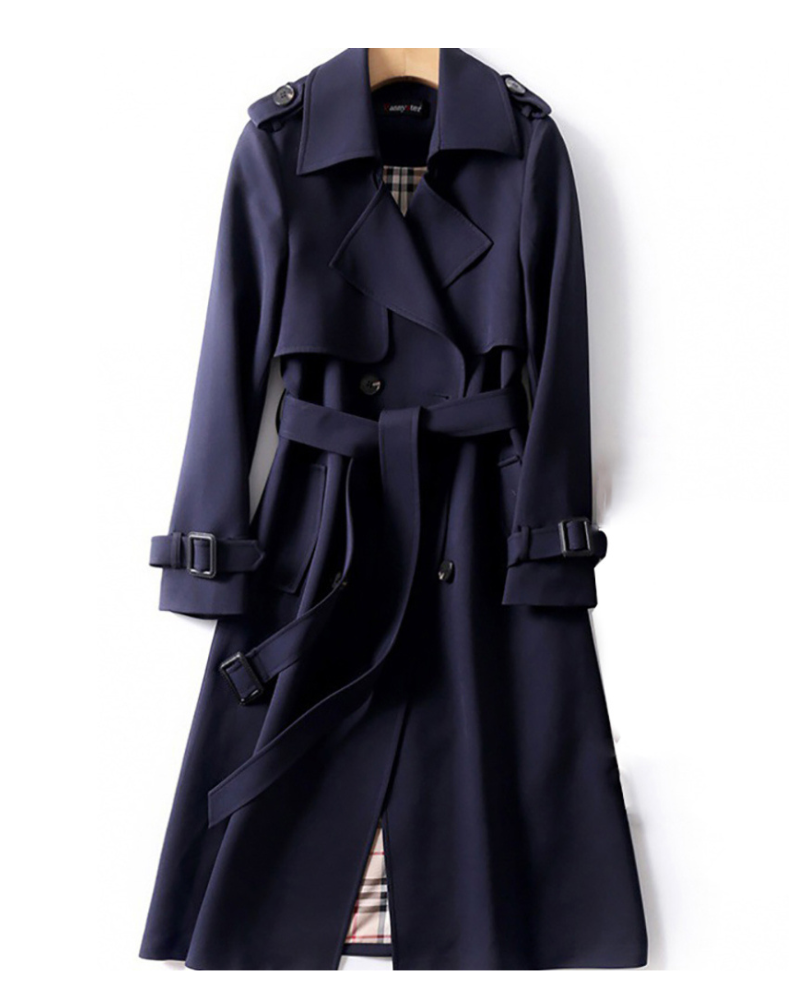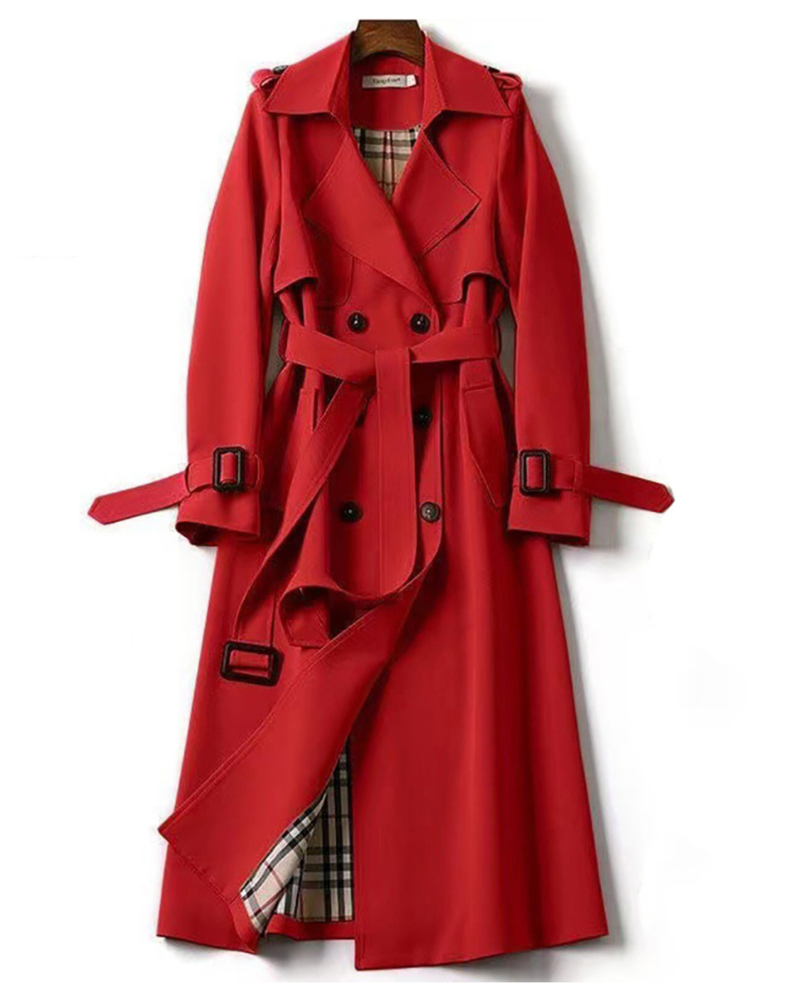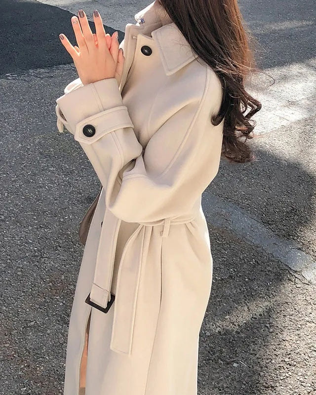 Trench Lungo Doppiopetto da Donna - Con Cintura in Vita e Spalline sulle Spalle