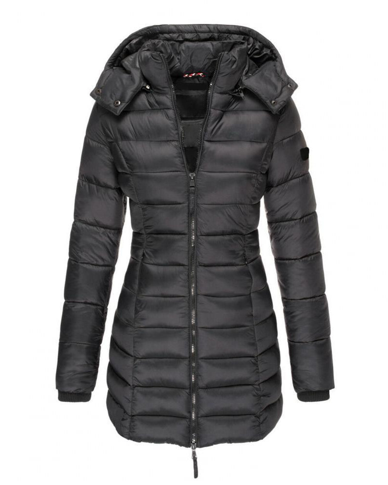 Giubbotto Lungo Imbottito da Donna - Con Cappuccio e Cerniera Integrale