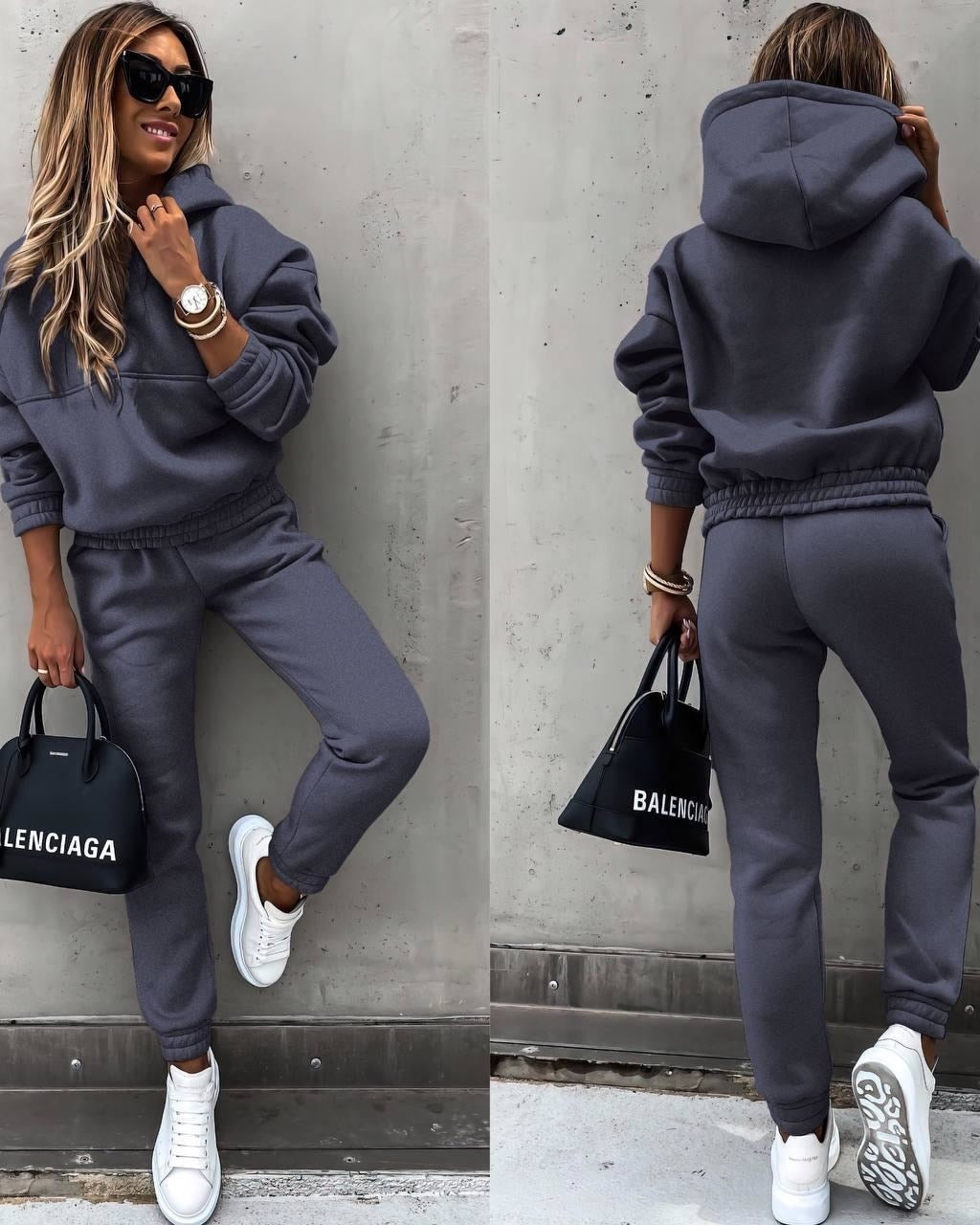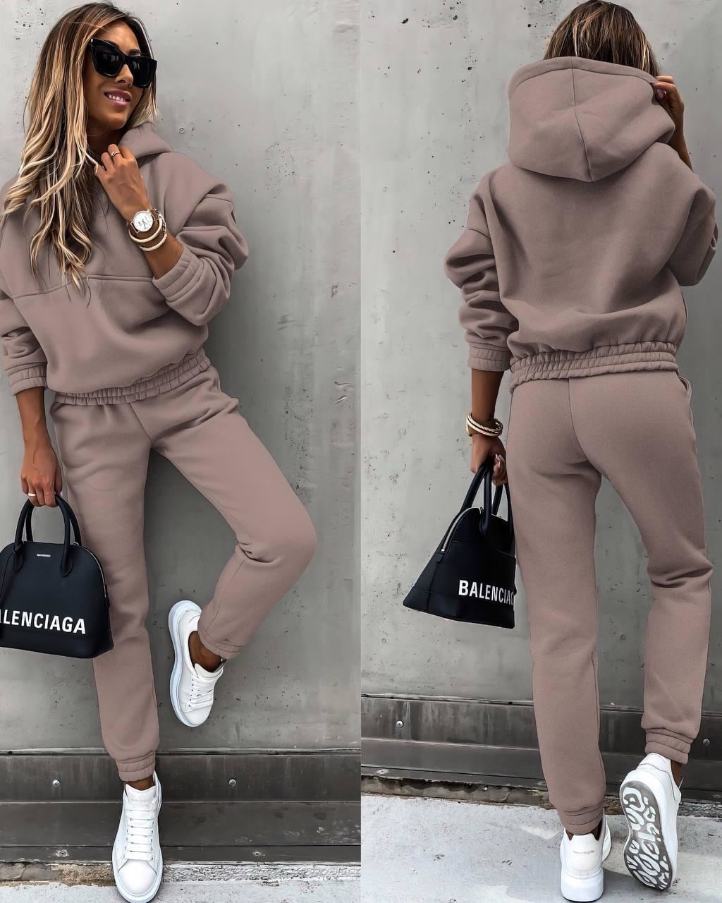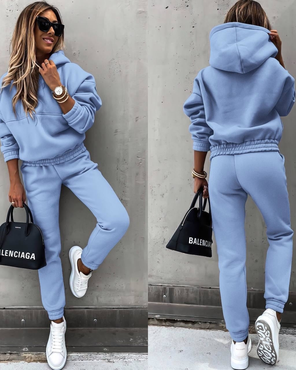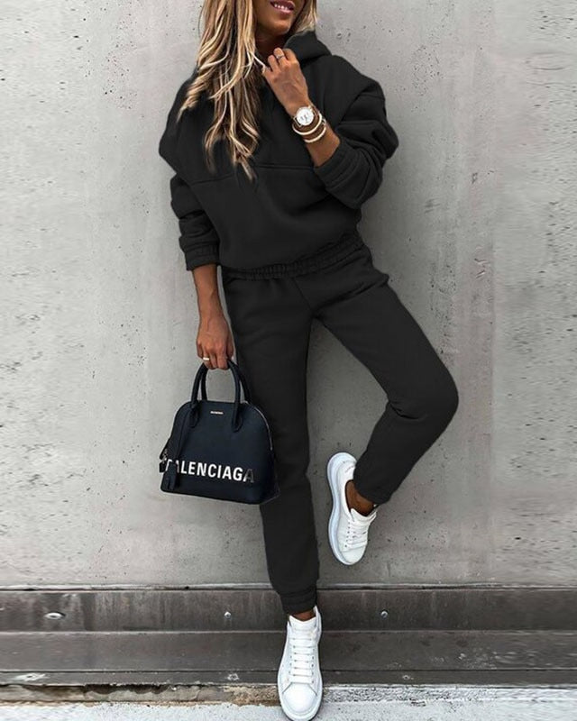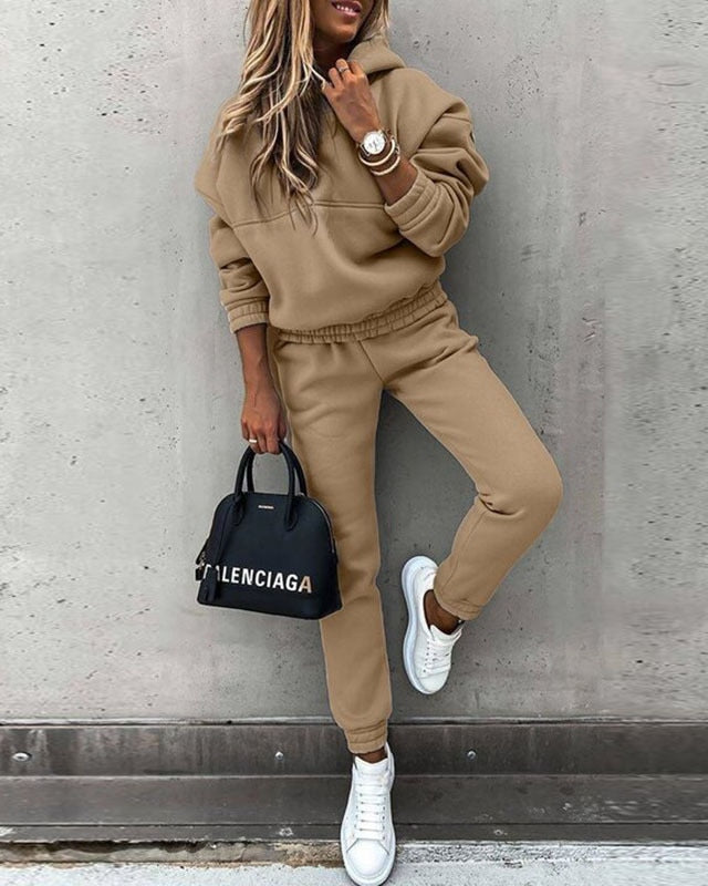 Completo con Felpa da Donna - Top con Cappuccio e Pantaloni con Elastico in Vita