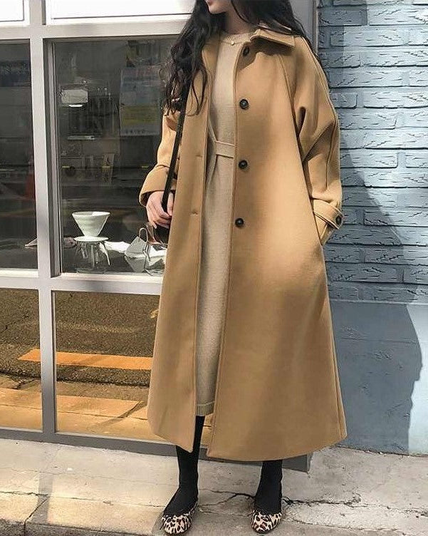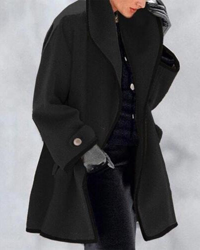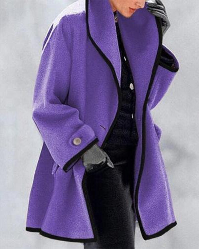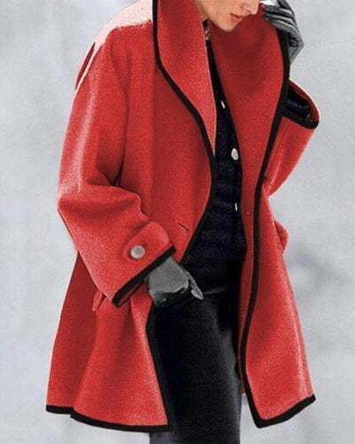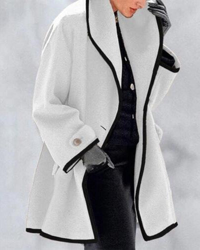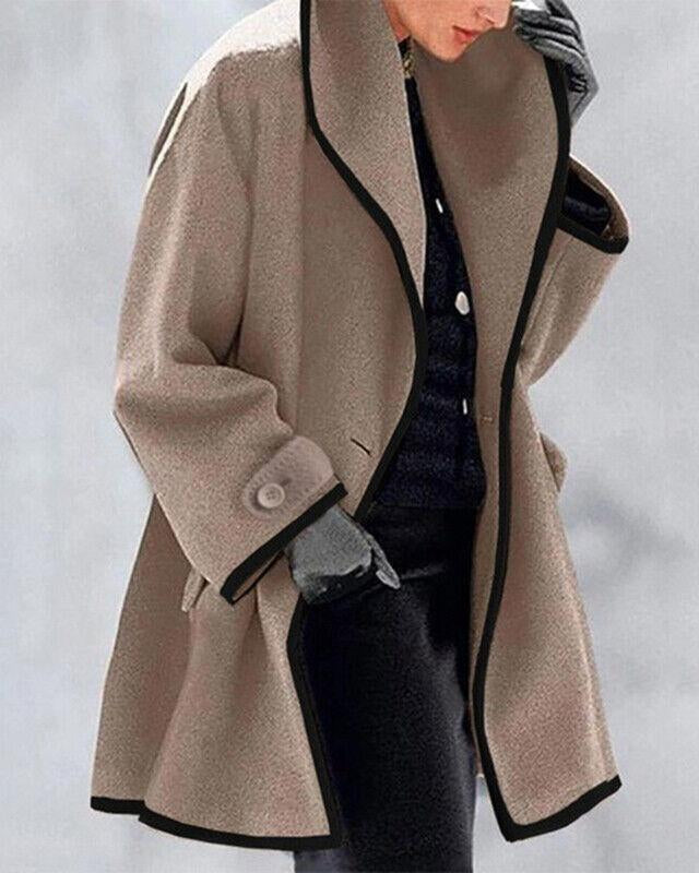 Cappotto Lungo da Donna - Con Bavero Ampio e Bordo a Contrasto
