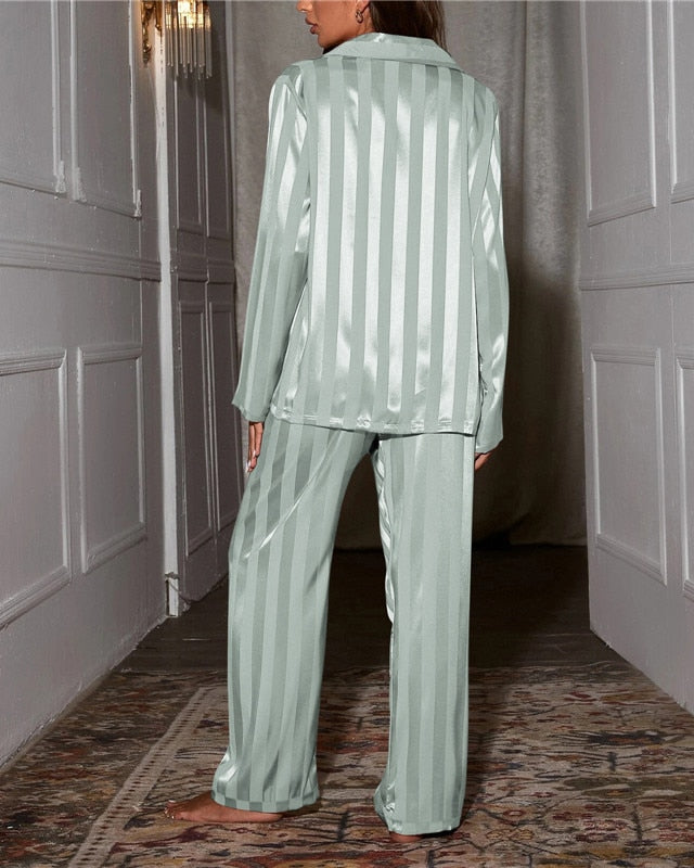 Completo Pigiama da Donna - Top con Bottoni e Motivo a Righe