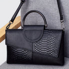 Borsa Clutch Nera da Donna - Con Patta Goffrata e Manico Superiore in Metallo