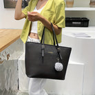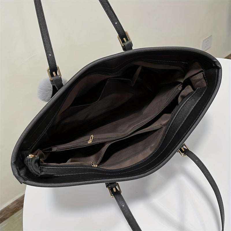 Borsa Tote Strutturata da Donna Nera - Con Manici Superiori e Ciondolo a Pompom