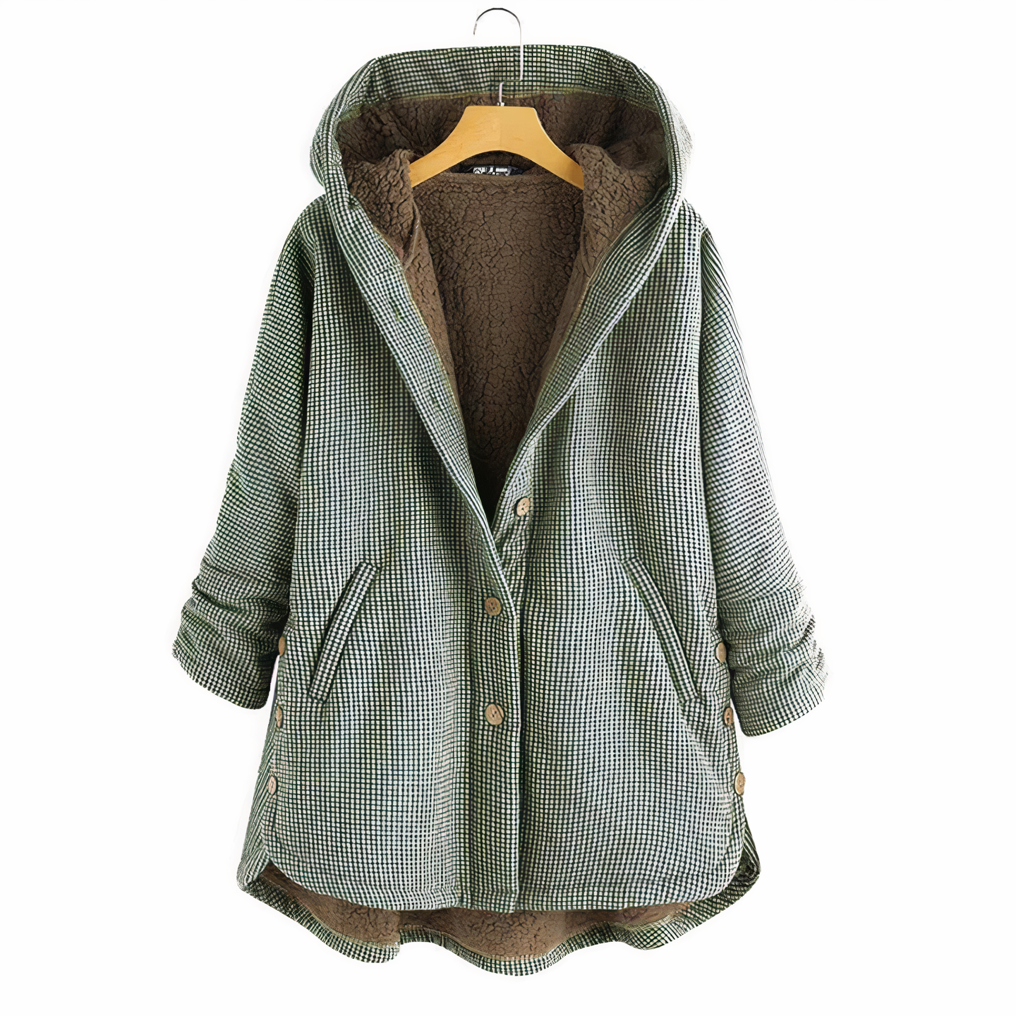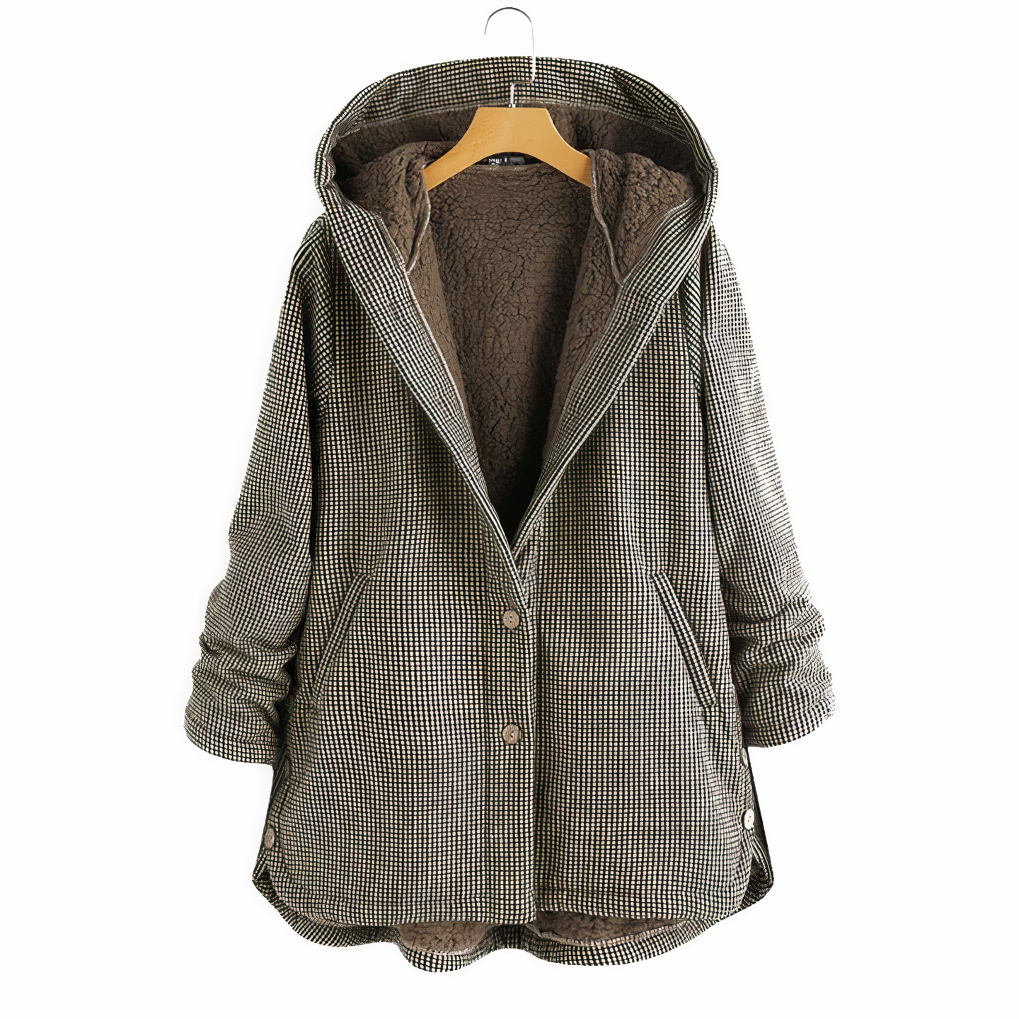 Giacca con Cappuccio da Donna - Con Motivo a Quadri e Chiusura a Bottoni