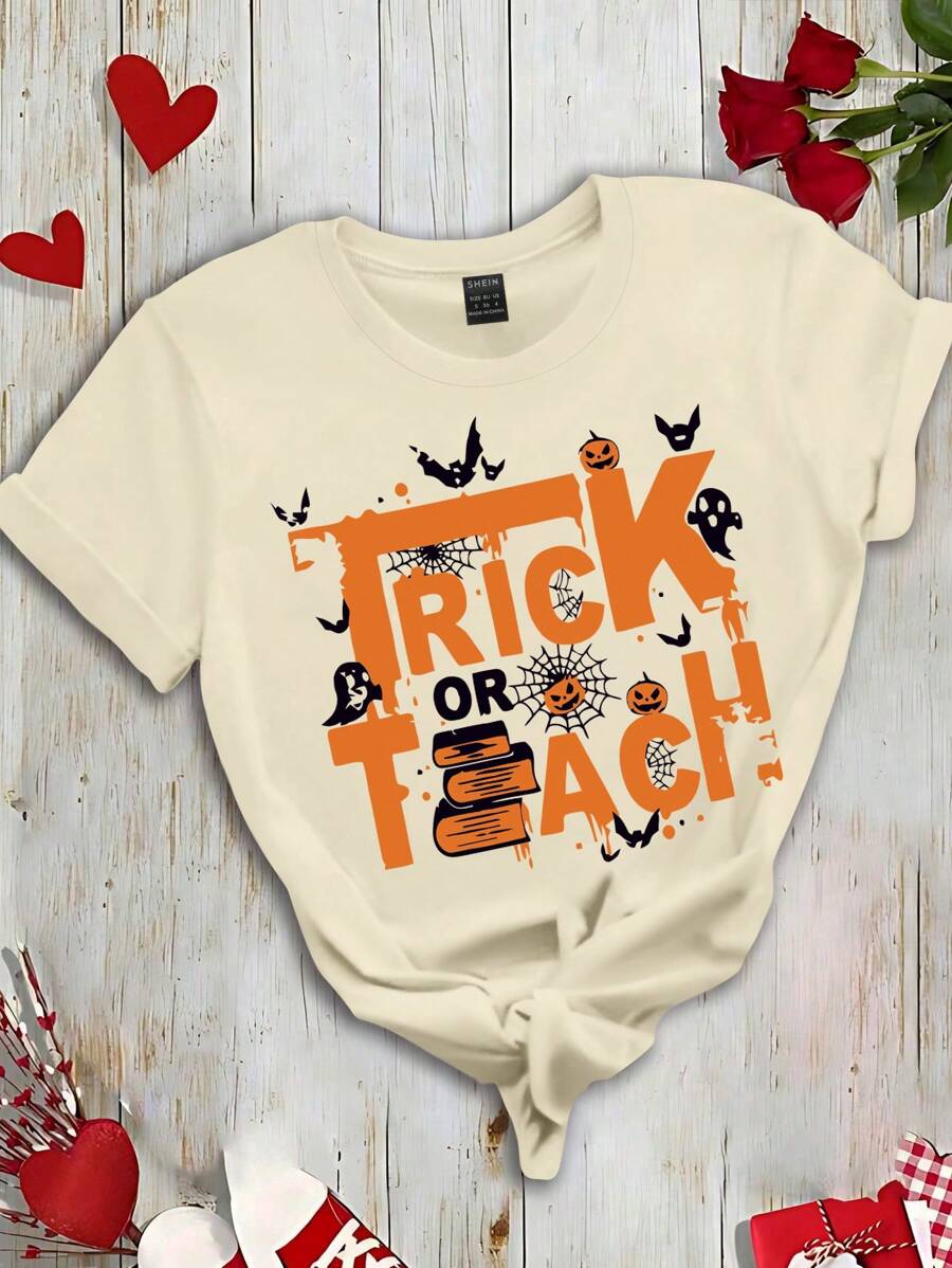 T-Shirt a Maniche Corte Donna - Stampa Grafica Festiva e Girocollo