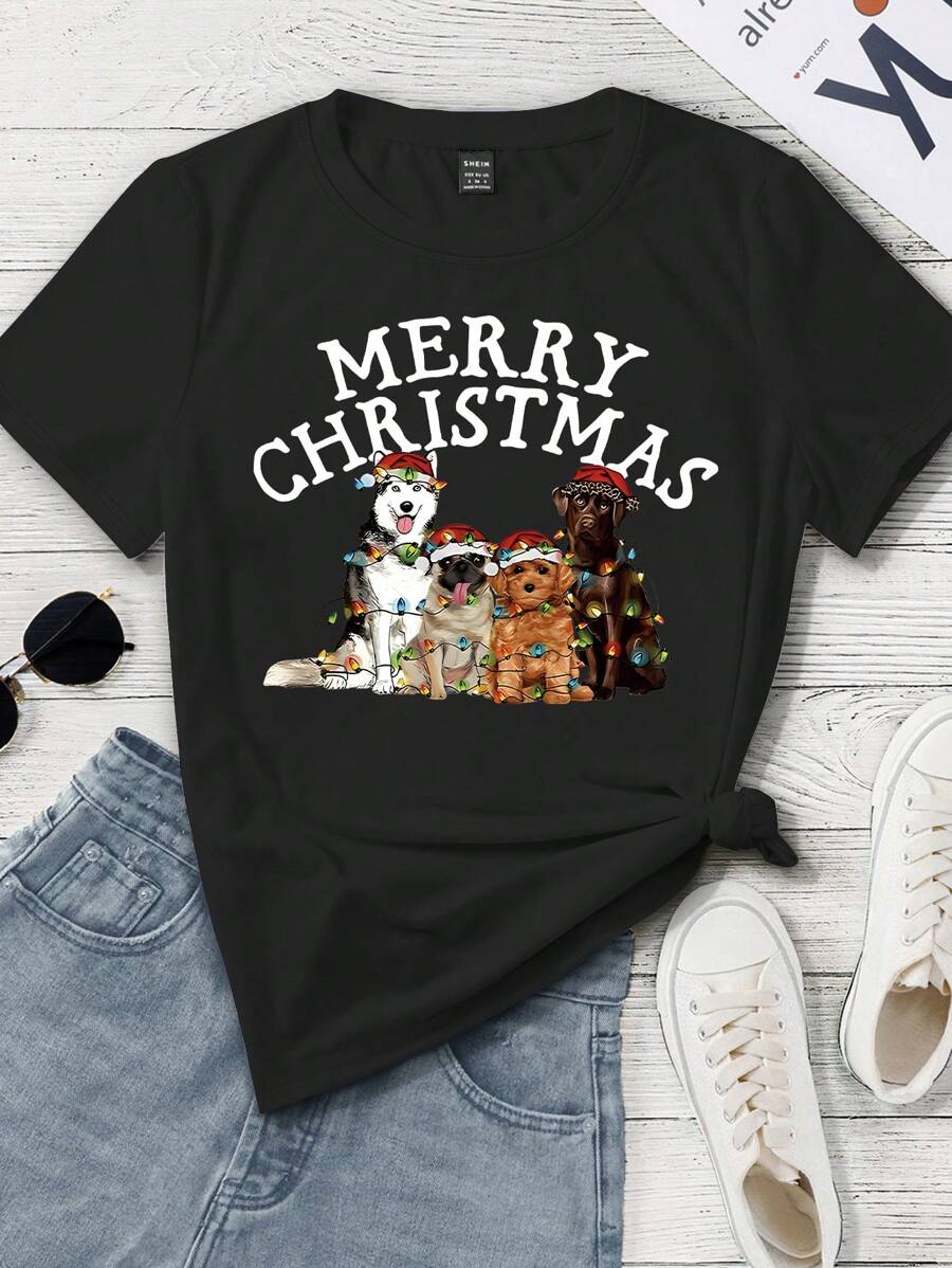 Sfoggia il tuo spirito festivo e regala all'Amante degli Animali nella tua vita il comfort e il fascino di questa T-Shirt a Maniche Corte da Donna.