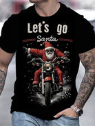 T-Shirt a Maniche Corte Nera da Uomo - Stampa Grafica Babbo Natale in Moto e Girocollo