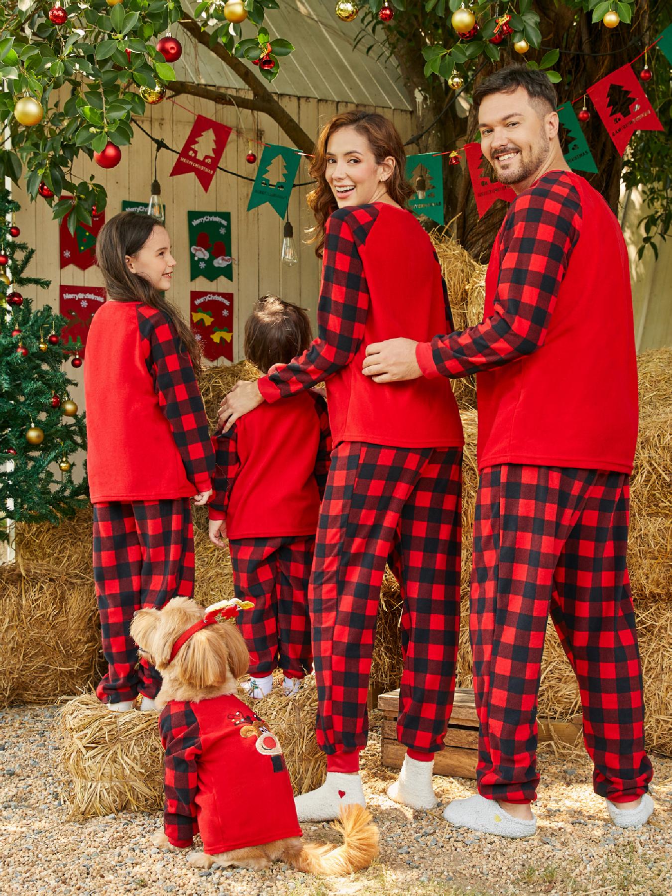 Set Pigiama Famiglia Rosso Natale - Renna e Stampa a Quadri