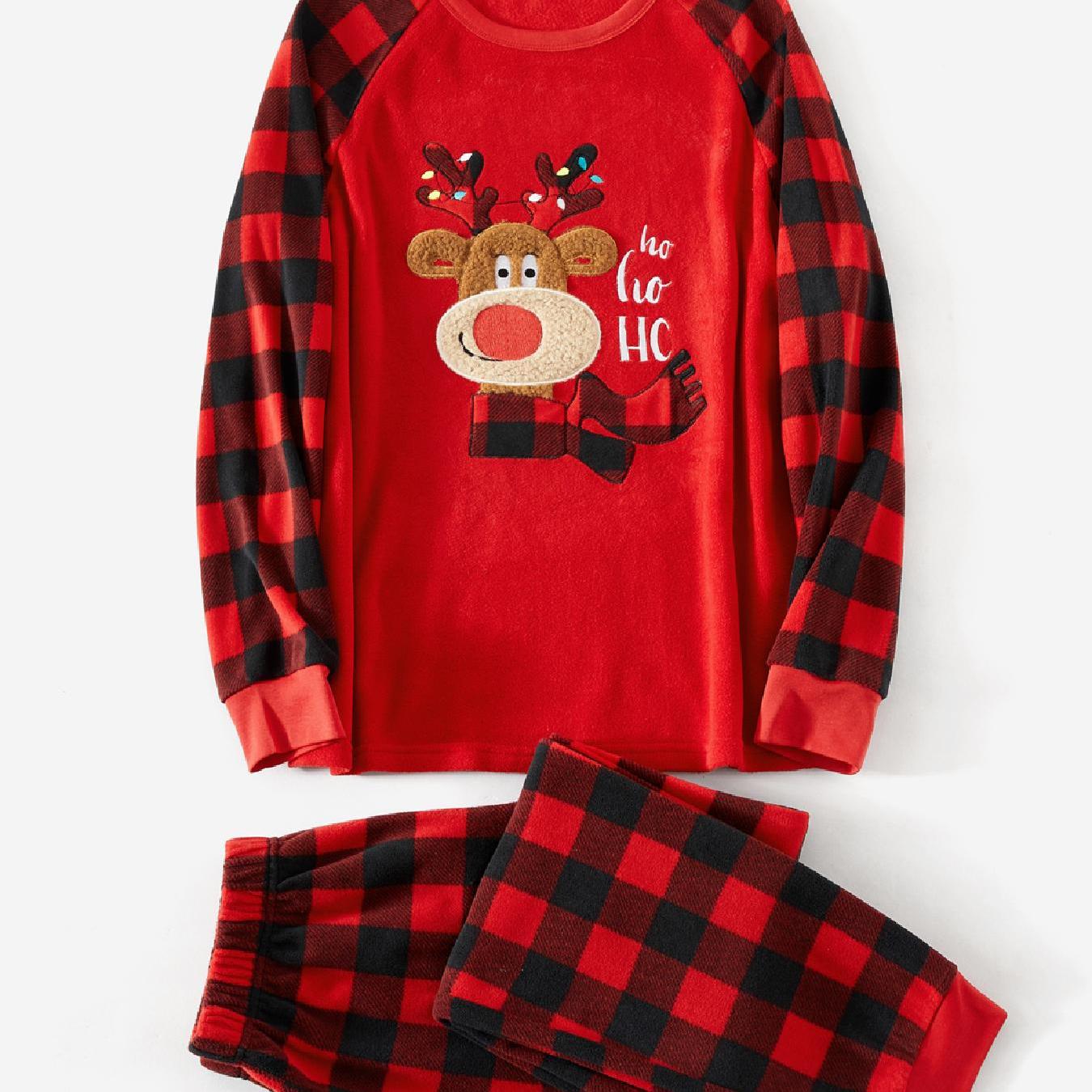 Sperimenta un Calore Ineguagliabile e Stile Festivo con questo Set Pigiama Famiglia Rosso Natale. Avvolgiti per una stagione festiva accogliente con il nostro Set Pigiama Famiglia Rosso Natale abbinato ed extra-caldo. Questo ensemble è realizzato in polare ispessito, fornendo isolamento superiore e Comfort Invernale Peluche per l'intera famiglia. Il set presenta affascinanti Top a Maniche Lunghe Grafici con ricami di renne e classici Pantaloni a Quadri in ricche tonalità rosse, conferendogli un'estetica natalizia senza tempo. Il Girocollo casual e la vestibilità comoda rendono questi pigiami perfetti per il Relax Accogliente delle Feste e per assicurare indimenticabili Momenti Fotografici di Famiglia la mattina di Natale.