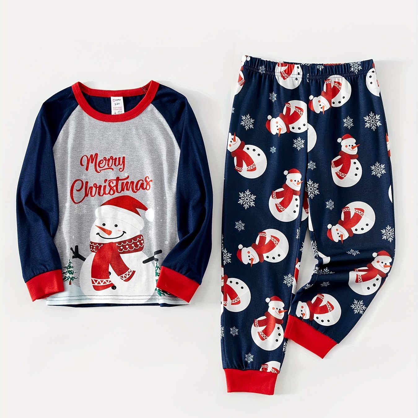 Set Pigiama Famiglia Blu Natale - Pupazzo di Neve e Maniche Raglan