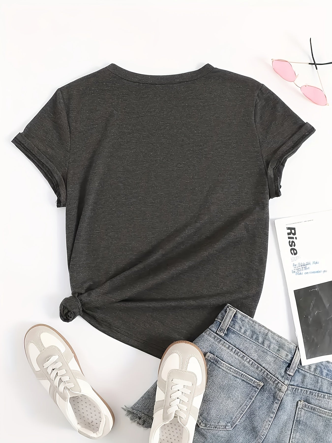 Mach deine Liste, überprüfe sie zweimal und erledige alles bequem mit diesem unverzichtbaren dunkelgrauen Damen-T-Shirt mit kurzen Ärmeln.