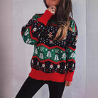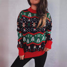 Maglione Rosso a Maniche Lunghe Donna - Motivo in Maglia Fair Isle Natalizio e Girocollo